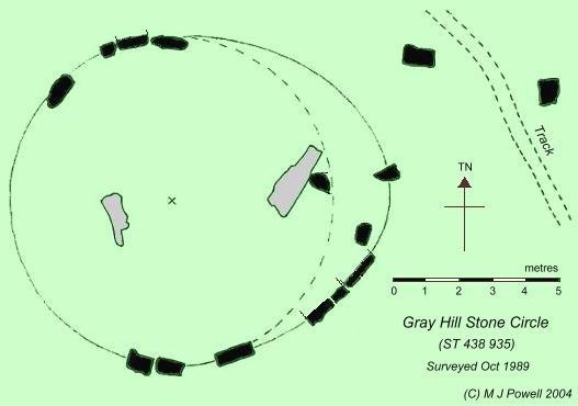 In Monmouthshire, an astronomical alignment at the Gray Hill stone circle (ST 438 935) near Wentwood Forest, was first proposed by Fred J. Hando, a resident writer and artist (Hando 1944). He suggested an alignment on the midwinter sunrise, downhill towards the South-east, between two standing stones which he named the "First Piper" and the "Second Piper". The claim is disputed by Burl (personal communication 1990) on the grounds that the line is inaccurate and that another stone adjcent to the circle has been overlooked in the assessment. However, a distinctive 'notch' on the distant skyline to the South-east, 'formed by the gorge of the River Avon', adds weight to the solsticial alignment claim (Chadwick & Pollard 2010, 102). For more details of this site, see the Wales prehistoric sites photo gallery.