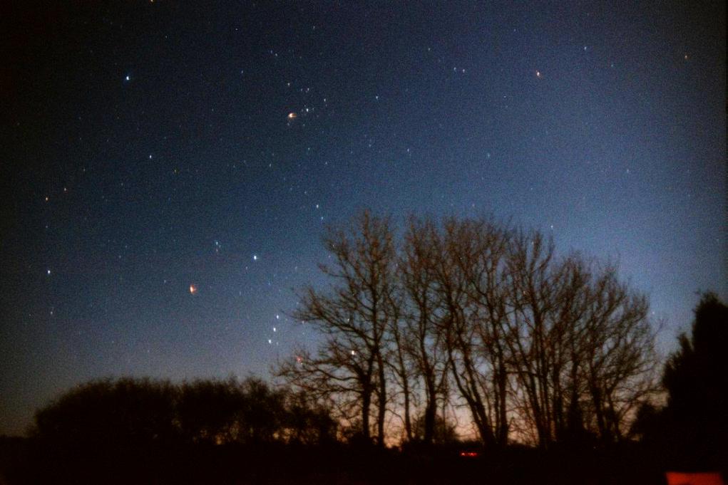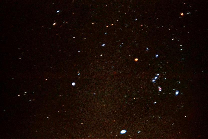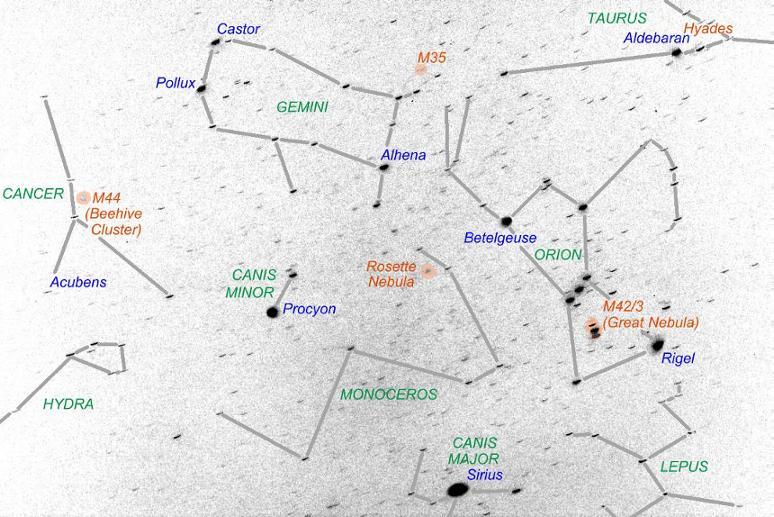Gemini and Cancer. The haze extending downwards to the left of Orion