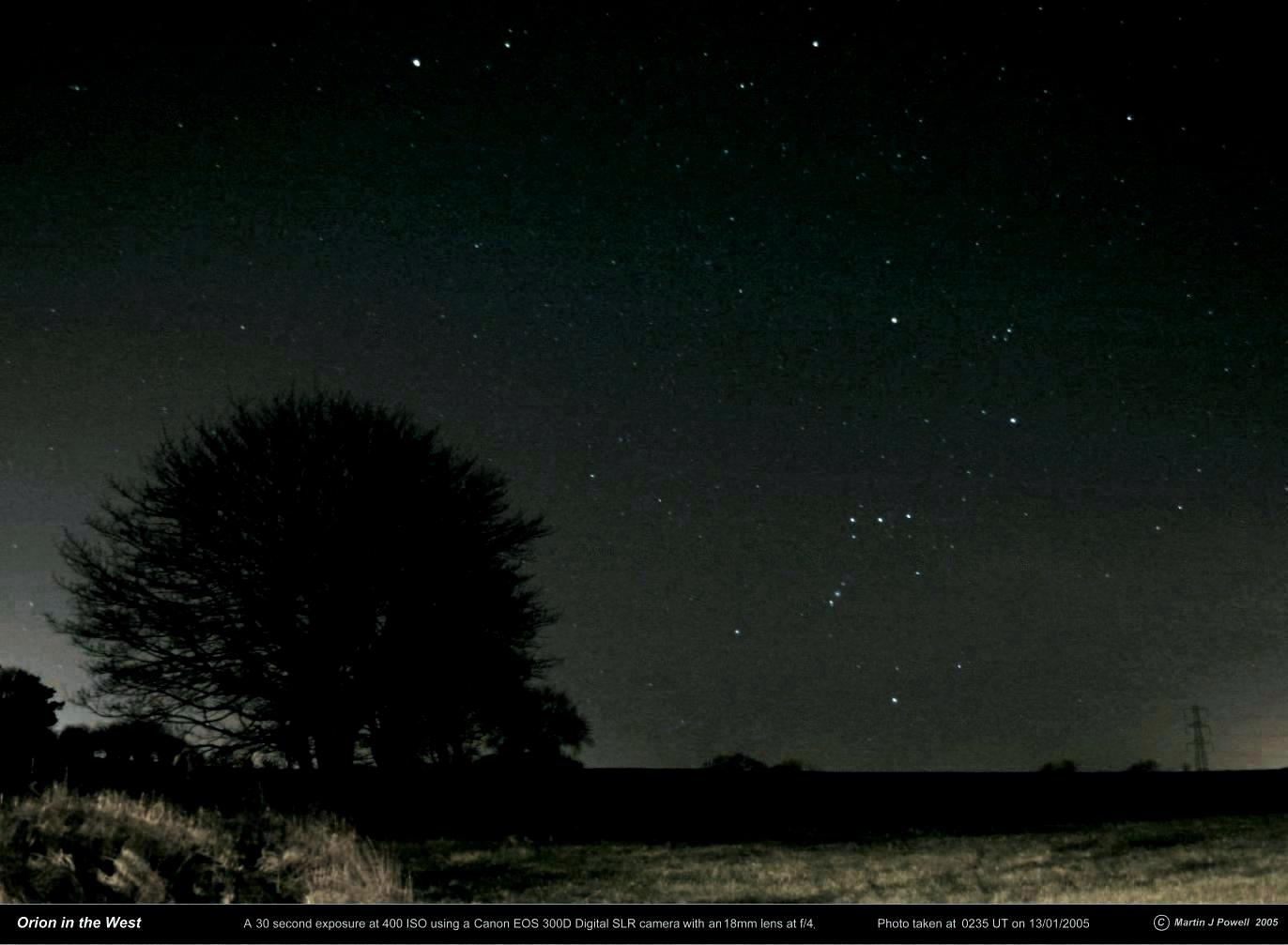 The picture was taken from West Wales in November 1999, at around 2130 UT. Orion can also be seen rising on the following dates and approximate local times: