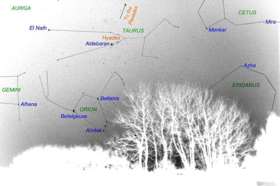 North and North-east of Orion are the zodiacal constellations of Taurus,