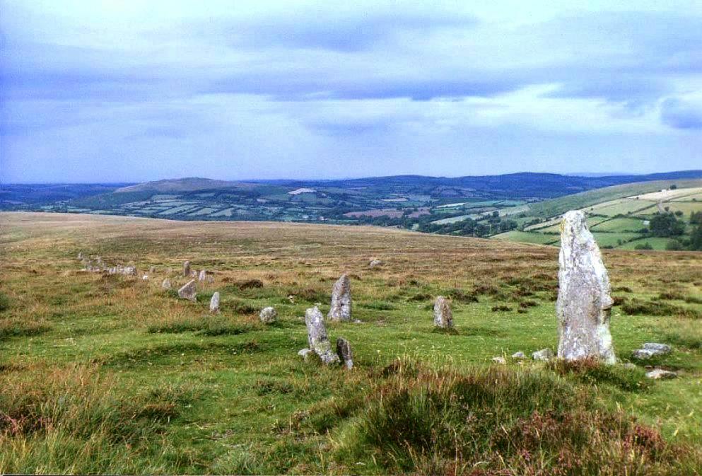 This is one of many Bronze Age stone rows to be found in Dartmoor National Park. This double-row is situated on Chagford Common and measures 472 ft (144 m) long by 6 ft (1.8 m) wide, orientated NNE-SSW. Most of the 99 stones stand less than 6 in (15 cm) high.