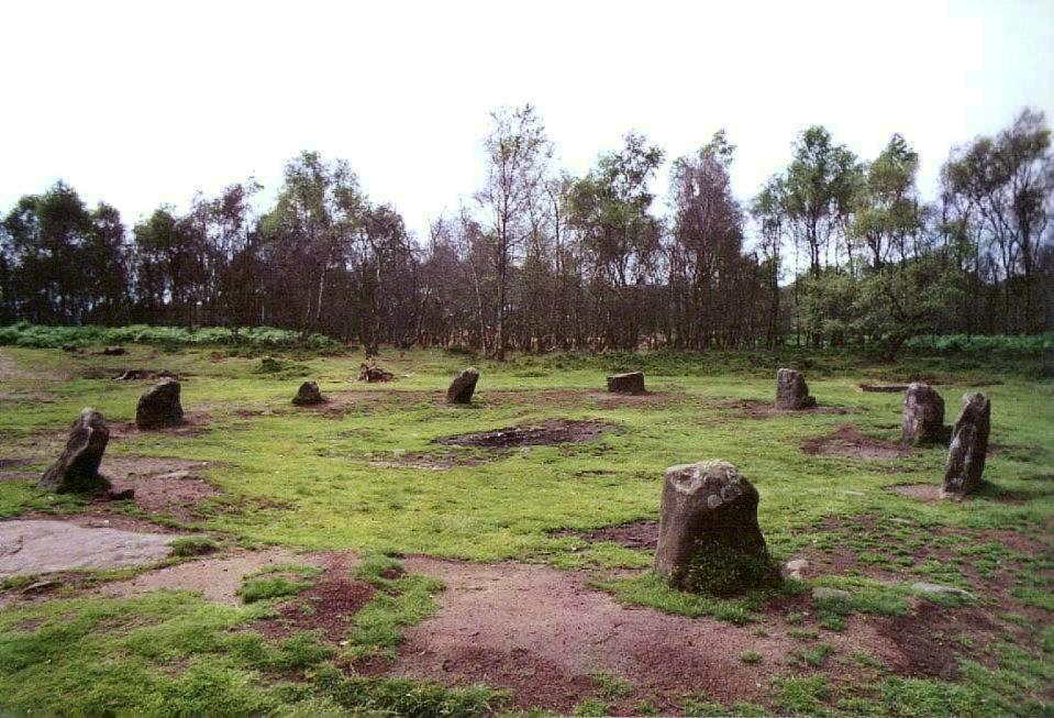 Located in a forest clearing on Stanton Moor to the North-east of Birchover, this stone circle is 33 ft (10 m) in diameter and comprises nine stones, none of which stand taller than 3 ft (1 m).