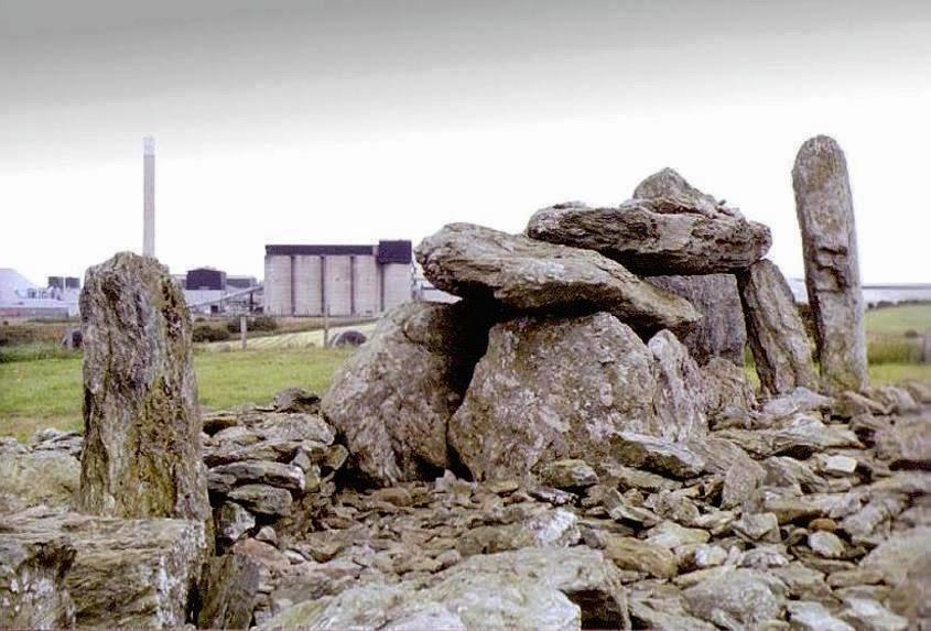 Archaeologist Frances Lynch considers the site peculiar in its class, due in part to the "odd angle at which the portal stones are set, neither well-aligned to the chamber nor parallel to one another."